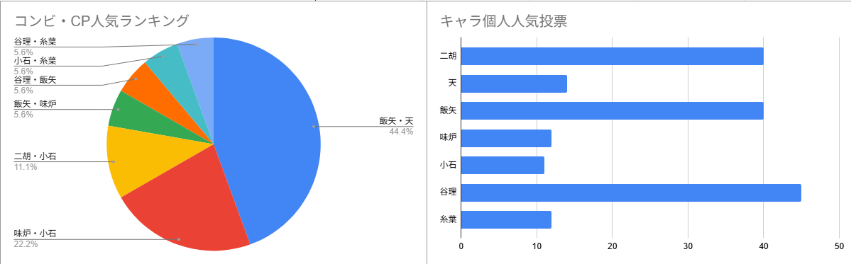 1位では飯矢を選んでくださる方が多くてうれしいですね。