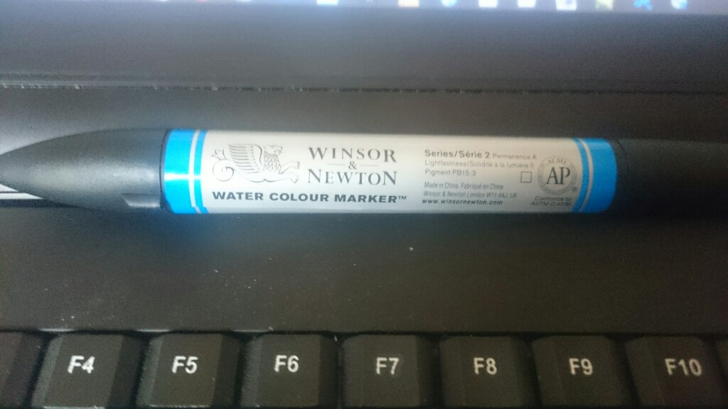 何をトチ狂ったのか、ウォーターカラーマーカーを見つけたとき、ちょっとお値段が……じゃあ2本だけ買おう!!青色色違いで!!