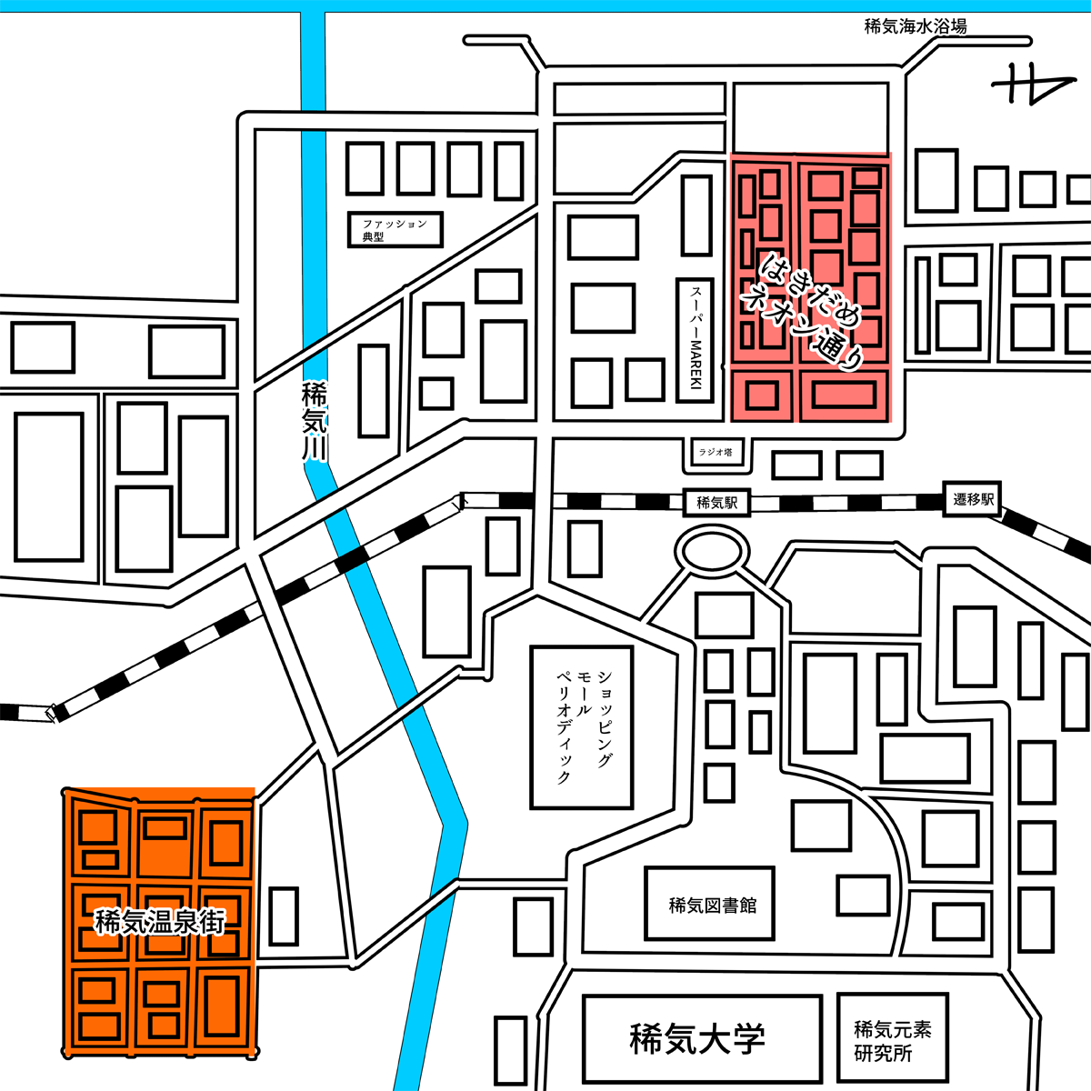 稀気市の絵を描いたら、それを見ながら地図を起こしてみました。