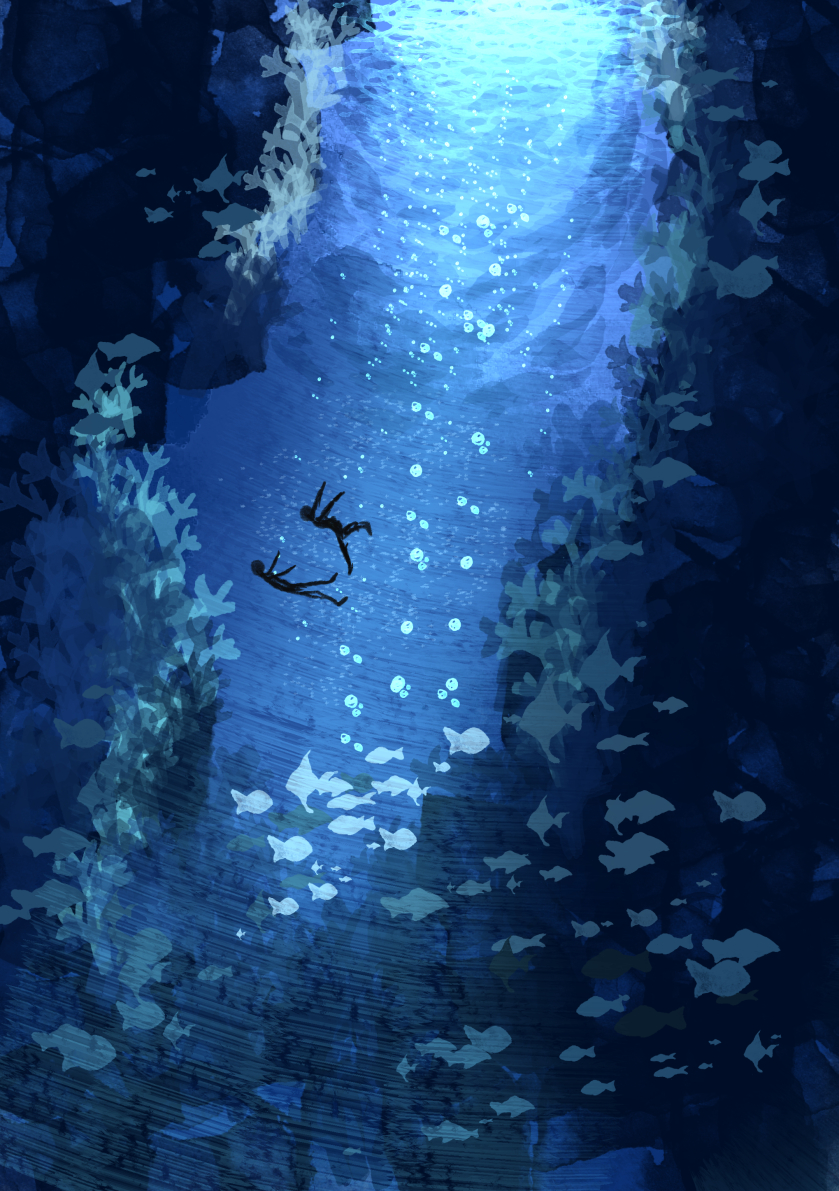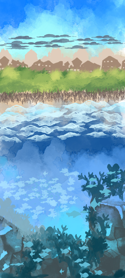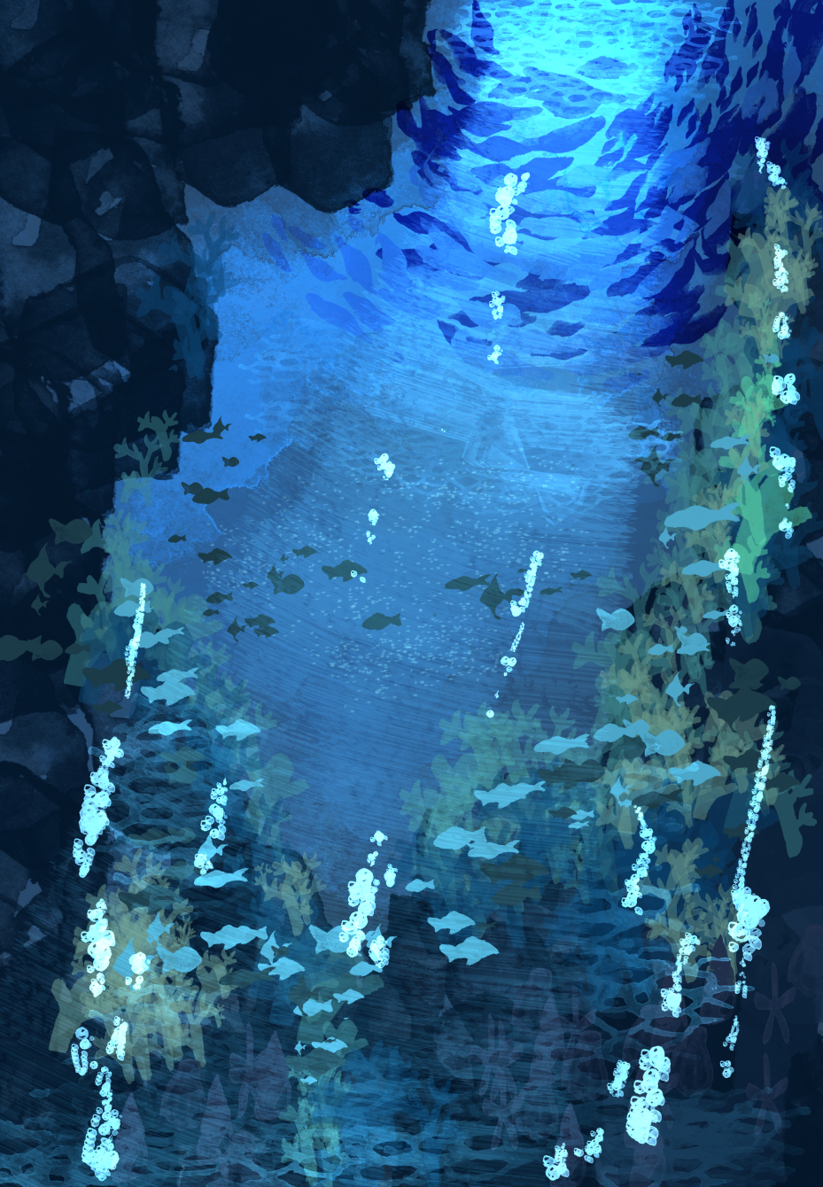 これは、なんとなくさらに海むけブラシを増やしてかいた海中の絵。