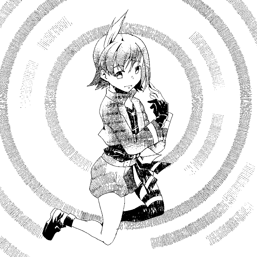 濃い黒色の部分を、昔作った自作ガサガサぶらしで描いてみたモノクロ絵だよ。