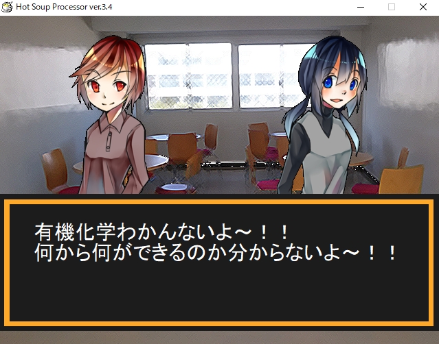 今回は、少しストーリー性が欲しかったので、ノベルゲーム形式で少しだけストーリー性があります。