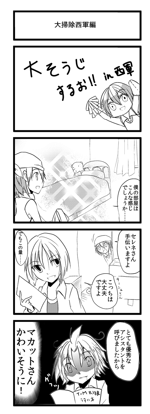 セレネ様の部屋は、薄い本とかCDとか画材が散乱してて、一見汚いけど、片付けにターシュを部屋に入れる訳にもいかず……的な。でも、少年隊の誰よりも生活感のある部屋な気が。