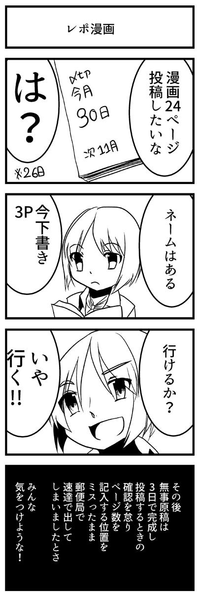 そんなこんなで無事完走できることを目指しつつ、投稿用の漫画も描いていきたいです。ネタもキャラもないけど。