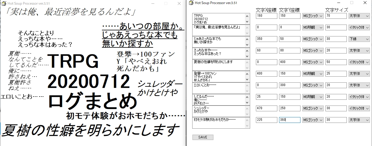 こんな感じの2ウインドウを使って作ることが出来るツールが1本(ゲームではなく初のちゃんとしたツール作成)