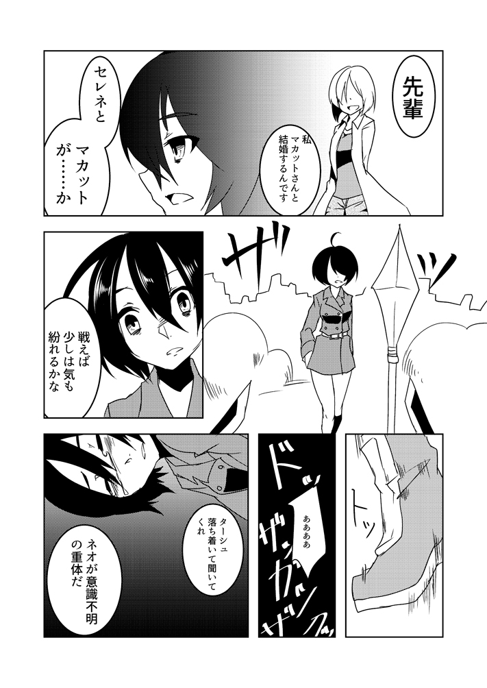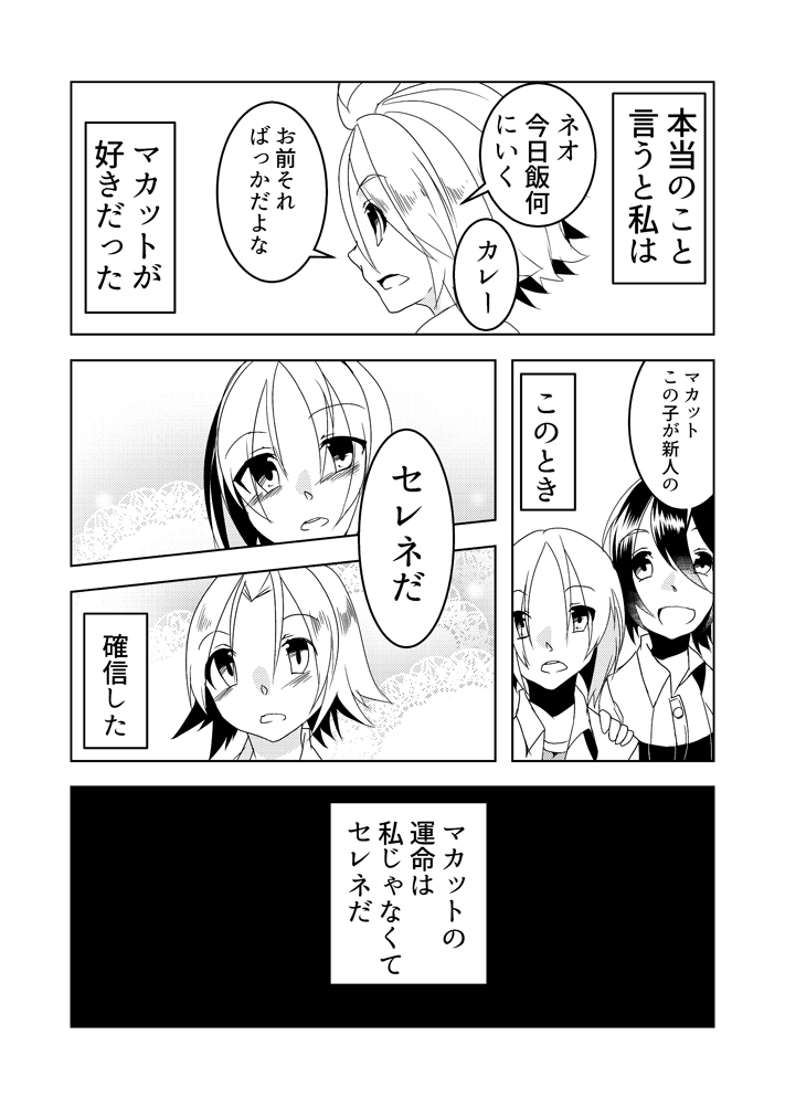 このセレネと結ばれるマカットを後押しするネオとそれを見ているロッシェルさんって構図、いろんな視点で見てみたい気持ちがいっぱいいっぱい。描けたら描きたいです……