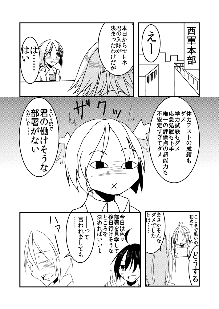 セレネ入隊時の漫画も少し考えてたあったのですが、結局没にしたもの。