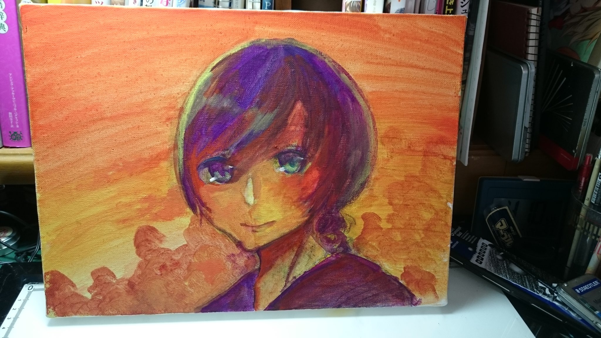 キャンバスが一枚余っていて……(おそらく大分前に5枚セットとかで買ったんですけど、F4って小さすぎて油絵やるにはちょっと書きづらく……放置してました……)