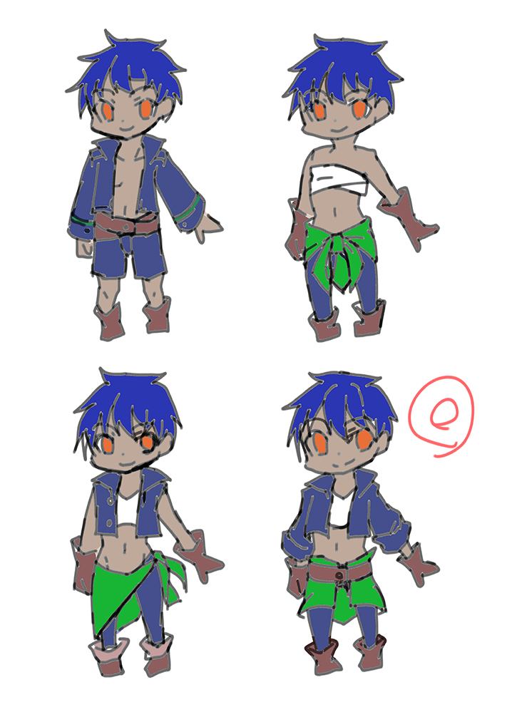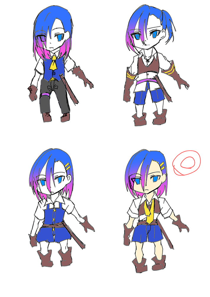 このデザインで、一枚絵を描きたい(ミニキャラでいい)と思ったけど、