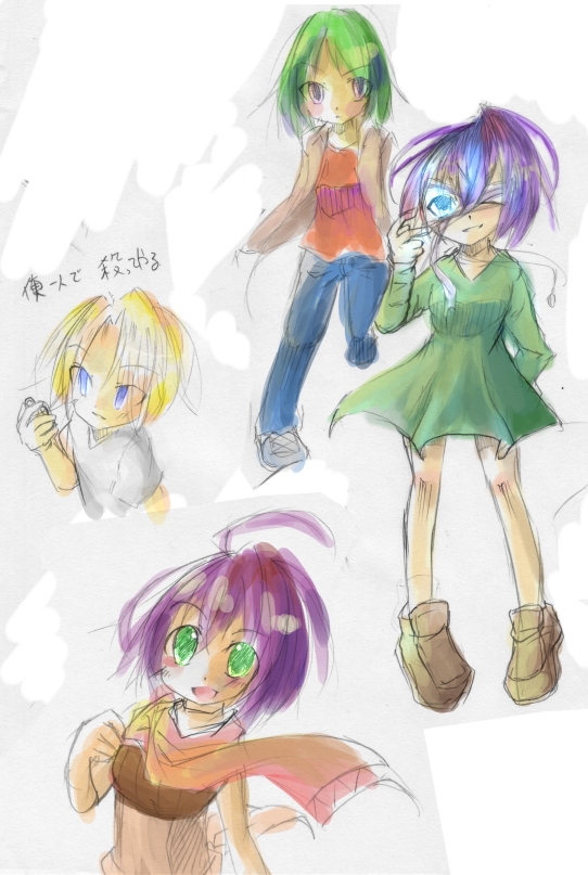 補習中に落書きしたものに色をおいてみた。