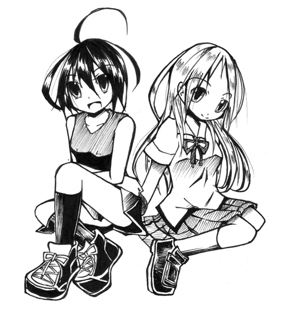 授業中に描いた落書きと、その落書きに色を乗っけてみたもの。