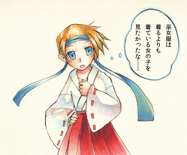 巫女服のサイファ君を描いてみた。