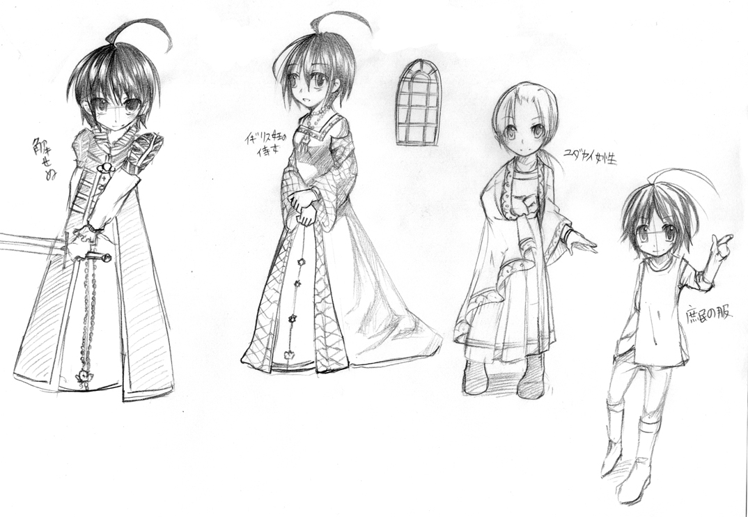 と言うわけで、例の中世ヨーロッパの服の資料を見ながら描き描き