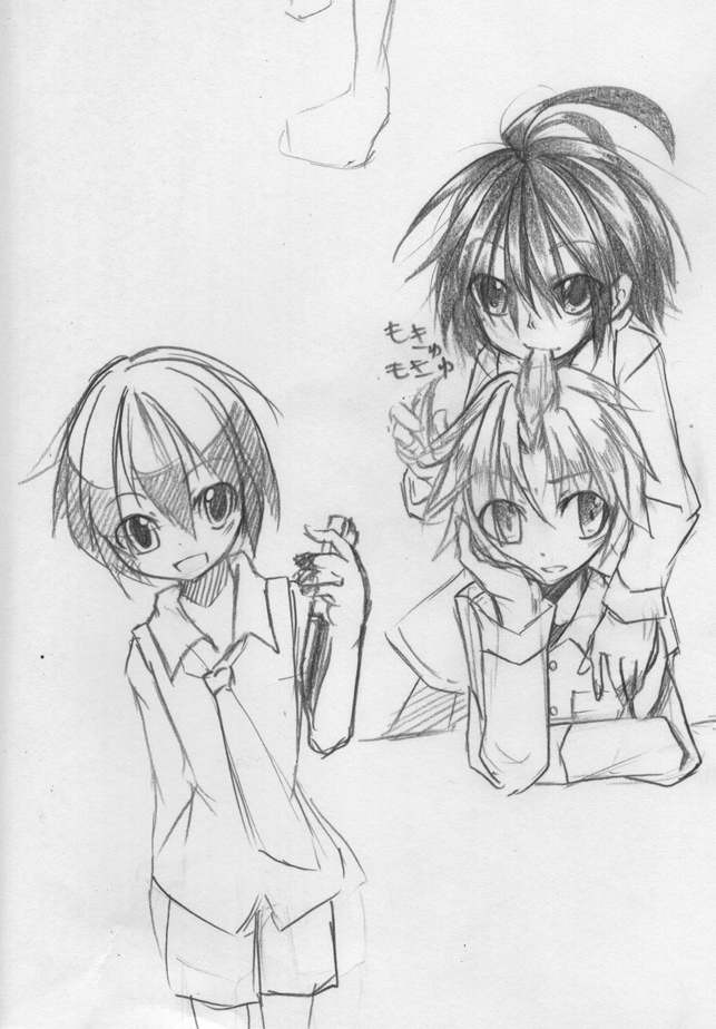 もきゅもきゅしてるのが可愛すぎてふつう頭身で描いてしまった物であったりする。友人A、すまぬ……