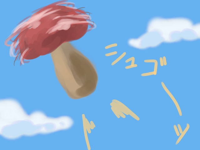 と言った後、キノコは傘を超スピードで回転させることで飛ぶということにしてしまい、結末としてイメージは
