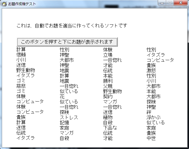 貰ってるお題を片っ端からボタン押す度に別のを表示してくれる、