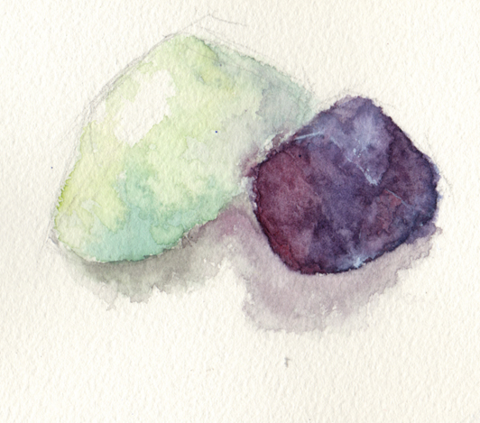 描いたのは、部屋にあった石……グリーン・フローライトとアメシスト。