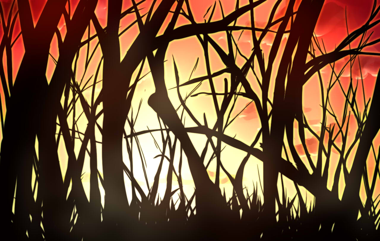 夕焼け空。手前の風景を全て影にしての、表現をやってみたくて……