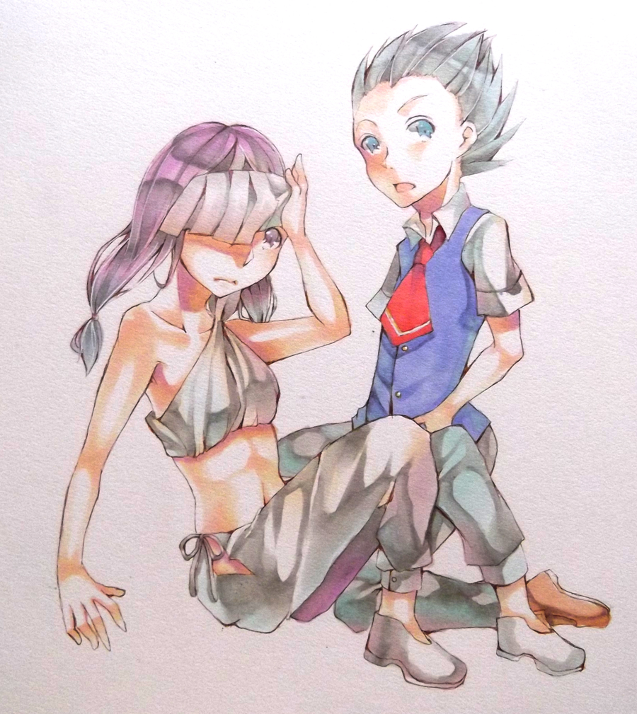 今描いてる漫画の子。右側の子が主人公のやってるソシャゲの推しキャラを模倣した姿をしているが肉体は男の触手男の娘
